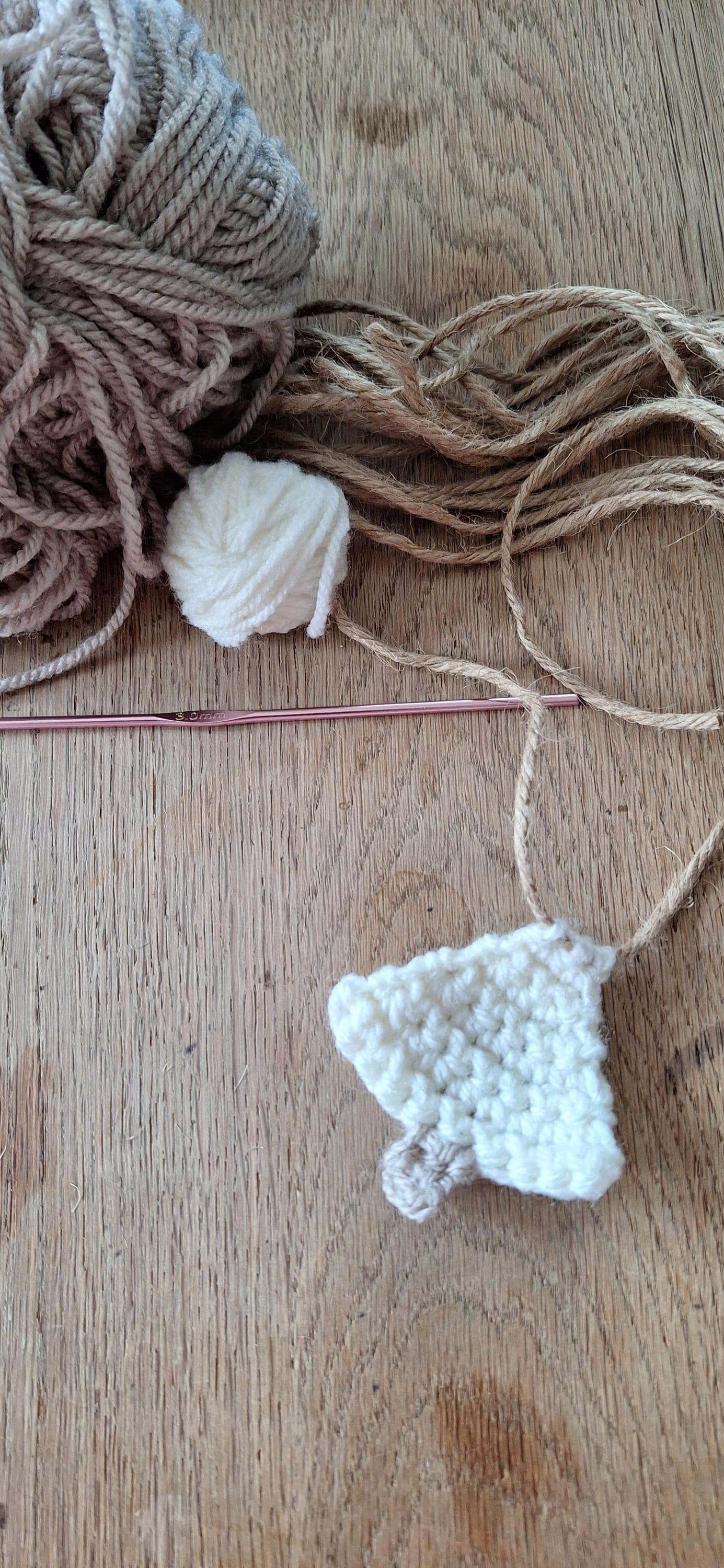 Ik maakte vandaag veel voorbereidingen want zaterdag en zondag sta ik met een standje op een kerstmarkt. Met zelfgemaakte gnooms, kerstsokjes, kaarsjes, vaasjes en kaarsenhouders. Nu ben ik nog hangertjes aan het maken om aan de cadeautjes te hangen. Die zie je op de foto. Leuk, hè?! Als de markt voorbij is, dan zet ik het patroontje online en kan je het ook maken.